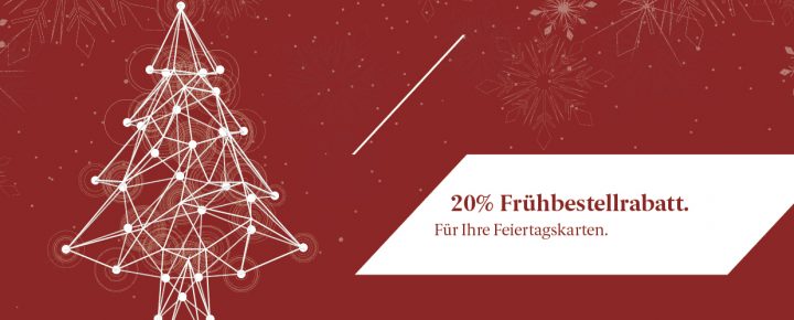 Bei Bestellungen von geschäftlichen oder privaten Weihnachts- oder Neujahrskarten bis am 30. November 2017 offerieren wir Ihnen einen Rabatt von 20%.