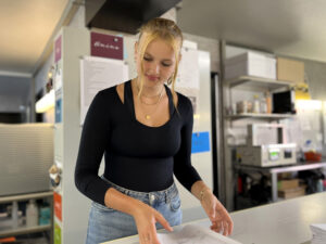 Anina und Mirlinda haben im Sommer 2023 ihre Ausbildung zur Medientechnologin EFZ Fachrichtung Printmediatechnik begonnen.